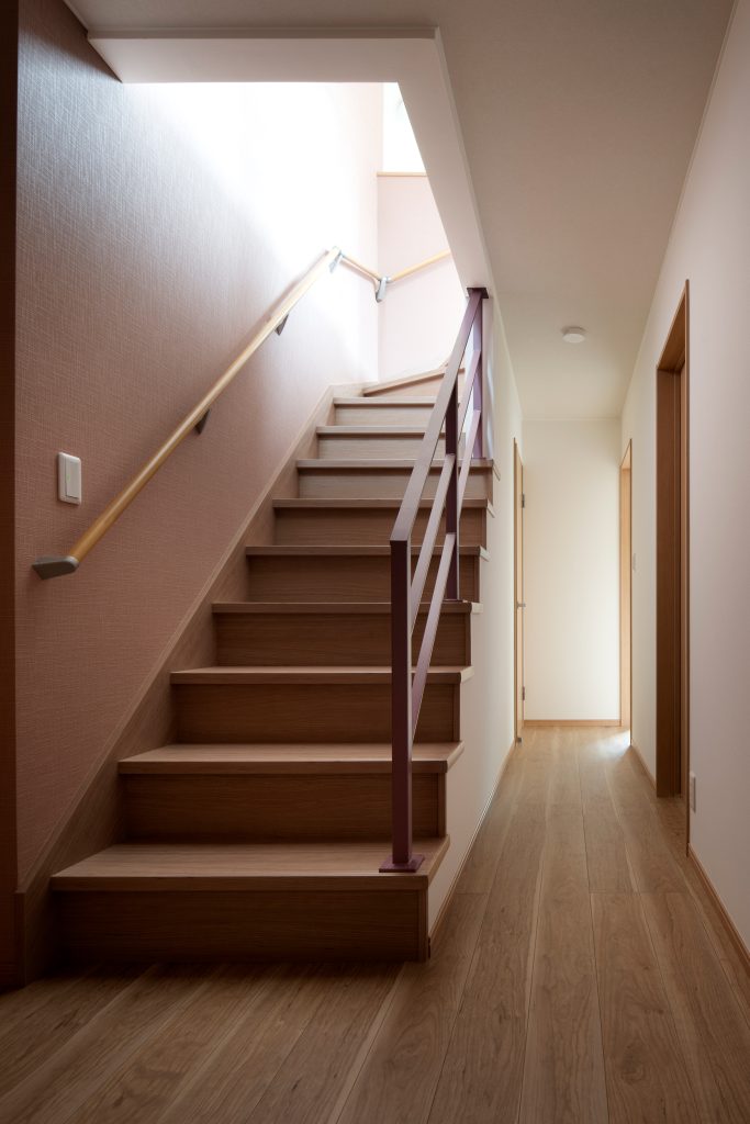 リビングがなるべく広く見えるように、階段の手すりは鉄骨で空間が抜けてみえるようなものを提案しました。